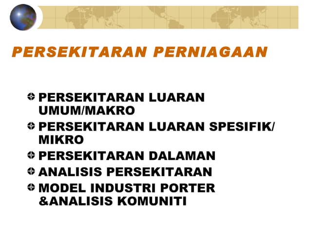 37 Full PDFs related to this paper. Faktor Persekitaran Umum 1 Situasi ekonomi dalam dan luar negara. Download Full PDF Package.