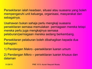 Get started for free continue. Persekitaran luaran contohnya. Menjelaskan faktor-faktor persekitaran umum yang merangkumi ekonomi.